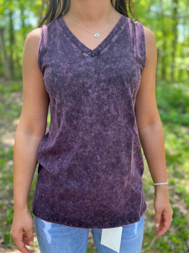 Mineral Wash Sleeveless tank with side slit