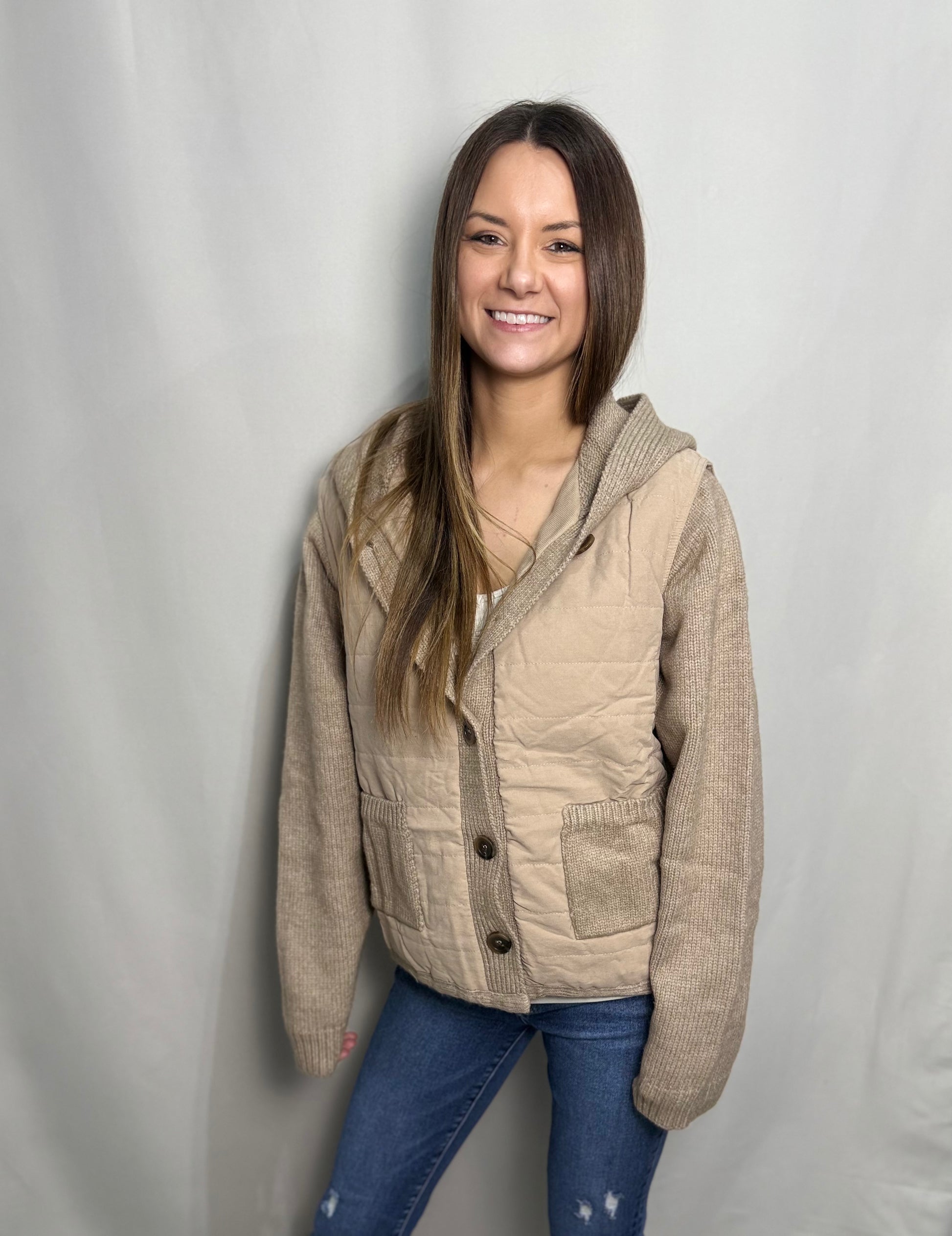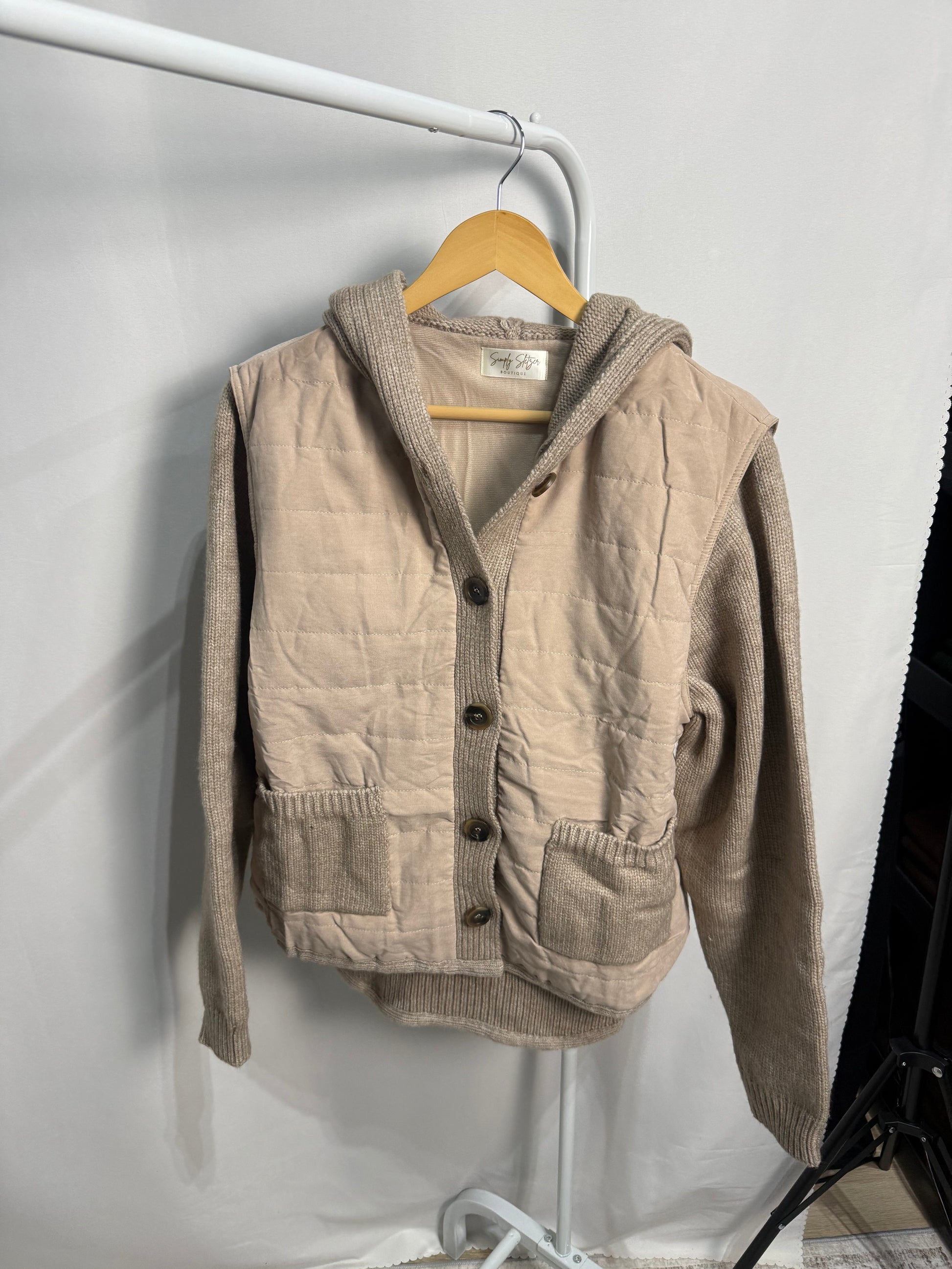 - knit jacket with quilted polyester fabric